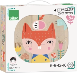 Entdecken Sie die Magie des Geschichtenerzählens mit den Holzpuzzles von Vilac. Illustriert von Suzy Ultman bieten diese Puzzles vier Schwierigkeitsstufen und sind ideal zur Förderung von Fähigkeiten bei Kindern.
