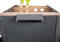 Acht Öffnungen zur Werkzeugaufbewahrung sorgen dafür, dass die Werkzeuge nicht auf die Köpfe der Kinder gerichtet sind, was die Sicherheit bei der Benutzung erhöht.