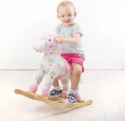 Dank des weichen Plüschsattels und der stabilen Holzkonstruktion ist das Spiel auf diesem Schaukelpferd bequem und sicher.