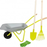 Das Set umfasst eine Schaufel, einen Rechen und Baumwollhandschuhe, was es zu einem idealen Paket für kleine Gartenhelfer macht.