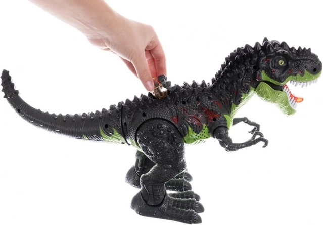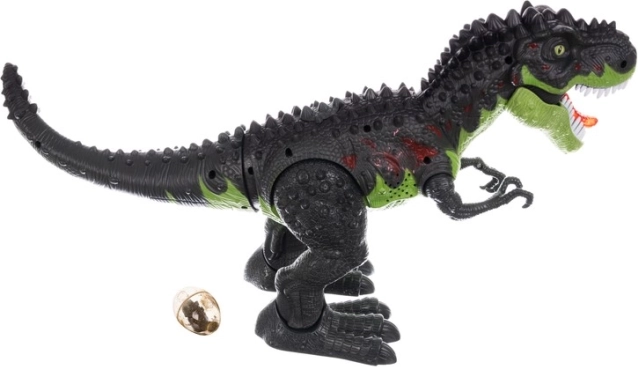 Neben den Licht- und Soundeffekten hat dieser T-Rex die Fähigkeit, Eier zu legen. Durch spezielle Öffnungen auf dem Rücken legt das Spielzeug Eier in das mitgelieferte Nest.