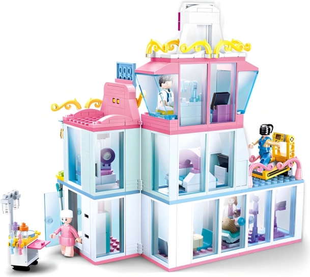 Entdecken Sie die Schönheit und Möglichkeiten, die der Sluban Girls Dream Krankenhaus Bausatz bietet. Dieses Set enthält 458 Teile und 5 detailliert gestaltete Figuren, die Kinder dank drehbarer und schwenkbarer Teile anpassen können.