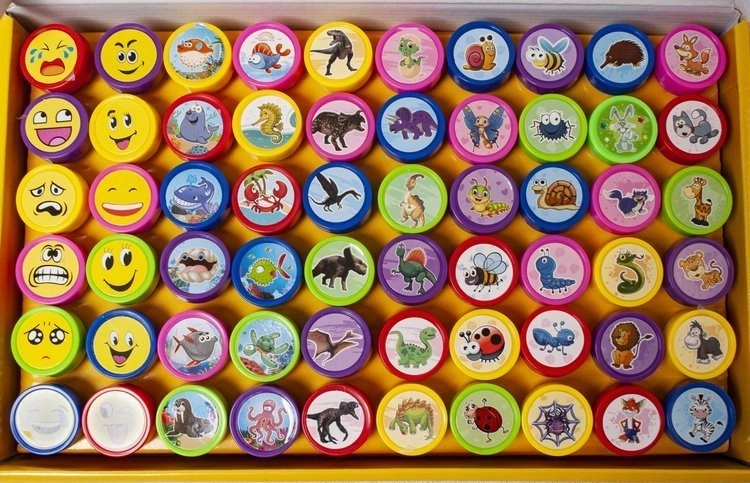 Dieses Kinderstempelset bietet 60 Stück mit verschiedenen Motiven wie Tiere und Emoticons, die stundenlangen Spaß für Ihre Kinder garantieren. sicheres Tinte und Verpackungen ohne scharfe Kanten gewährleisten eine sichere Anwendung.