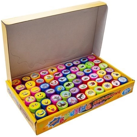 Kreatives Stempelset für Kinder mit 60 verschiedenen Motiven, kinderfreundliche Tinte und sichere Verpackungen.