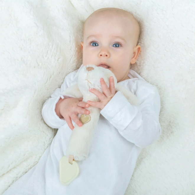 Das Hündchen besteht aus hochwertigen Materialien aus verantwortungsvollen Quellen und ist so gestaltet, dass es schon ab der Geburt sicher ist. Es ist leicht, gut greifbar und angenehm weich – ideal für erste taktile Entdeckungen.