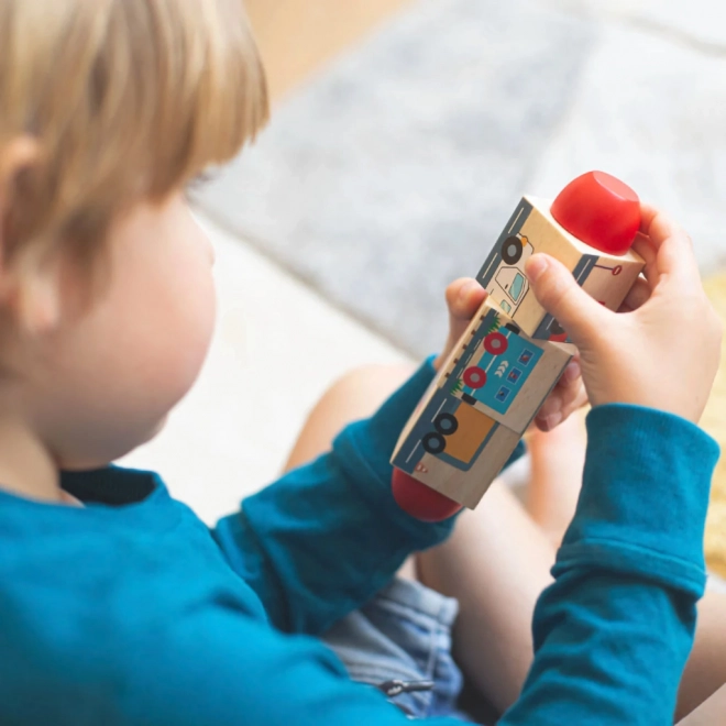 Das Spielzeug besteht aus hochwertigem Holz aus verantwortungsvollen Quellen und erfüllt die aktuellen europäischen Sicherheitsnormen. Kinder können die richtigen Kombinationen zusammenstellen oder die Bilder bewusst mischen und fröhliche „neue“ Maschinen erschaffen – der Spielspaß nimmt kein Ende.