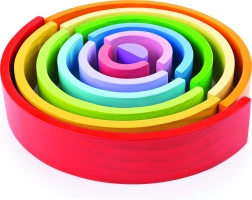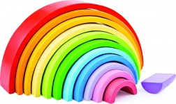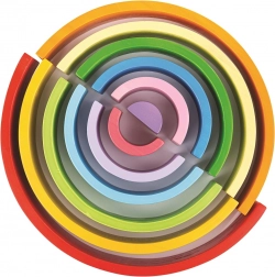 Der große Holz-Regenbogen ist ein zeitloses Lernspielzeug, das offenes Spielen ohne feste Regeln unterstützt. Kinder können die Bögen stapeln, schichten, verbinden und mit anderen Bausets kombinieren – die Möglichkeiten sind nahezu unbegrenzt. Dank der robusten Ausführung und der glatten Oberfläche liegt der Regenbogen gut in der Hand und hält dem täglichen Spiel stand.