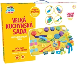 Enthalten ist eine praktische Modellierunterlage, die die Arbeitsfläche schützt und eine stabile Grundlage zum Gestalten bietet. Sechs Becher Knetmasse in beliebten Farben (Rot, Lila, Blau, Gelb, Weiß, Grün) sorgen für endlose Kombinationen und Inspiration.