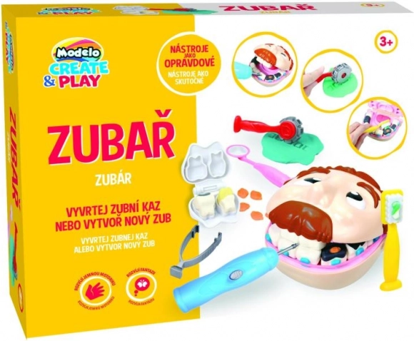 Kreativset Modelo Zahnarzt: Zähne modellieren, Karies bohren, Zahnspangen einsetzen. Knetmasse färbt nicht ab und trocknet nicht aus. Fördert Feinmotorik und Kreativität.