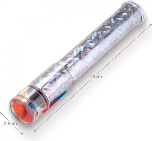 Im Set finden Sie alles, was Sie zur Herstellung eines funktionsfähigen Kaleidoskops mit einer Länge von ca. 25 cm benötigen. Dank austauschbarer Füllungen und Dekorationen können Kinder einzigartige Muster aus Perlen, Pailletten und Farbscheiben erschaffen. Perfekt zur Förderung der Feinmotorik, der Fantasie und grundlegender optischer Prinzipien.