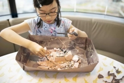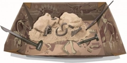 Erleben Sie echte Ausgrabungen. Der Gipsblock verbirgt einzelne Teile des Skeletts, die Kinder mit den beiliegenden Werkzeugen freilegen.