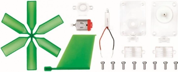 Enthält Rotorblätter, Motor/Generator, Zahnräder und Verbindungsmaterial. Kinder üben grundlegende Montage und verstehen den Zusammenhang zwischen Bewegung und Elektrizität.