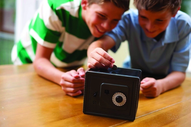 Bewahren Sie Ihre geheimen Schätze sicher im Tresor mit Zahlenkombinationsschloss auf. Stellen Sie mit dem Drehzahlenschalter Ihren eigenen Code ein.