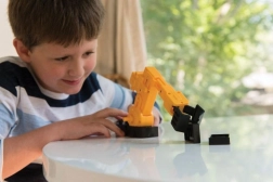 Der Arm bewegt sich auf und ab und sein Greifer öffnet und schließt sich, um kleine Gegenstände mühelos zu heben. Ein großartiges Training für Feinmotorik und Konzentration.