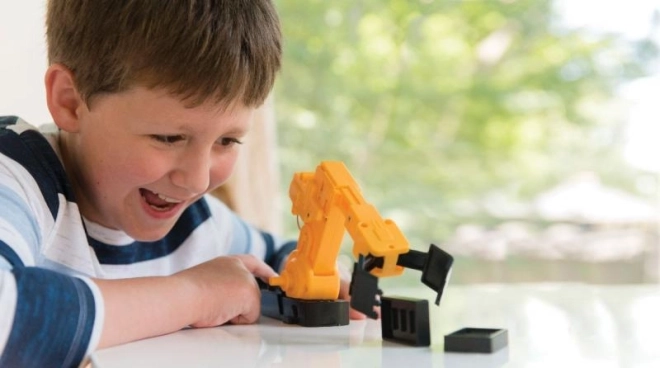 Bauen Sie Ihren eigenen motorisierten Roboterarm, der sich auf und ab bewegt und dessen Greifer sich öffnet und schließt, um kleine Gegenstände anzuheben. Ein großartiges STEM/STEAM-Lernspielzeug, das Geschicklichkeit, Logik und Neugier fördert.