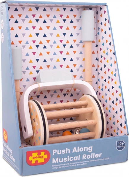 Diese wunderschön gearbeitete Musikrolle aus 100% FSC® Holz fördert nicht nur die Motorik, sondern auch die sensorischen Fähigkeiten Ihrer Kinder. Durch die Bewegung und den Klang der Glocke, die zwischen den Holzstäben schwingt, entwickelt das Kind seine Hörfähigkeiten. Das Spielzeug kombiniert natürliches und buntes Holz, wobei die Farben die visuelle Wahrnehmung anregen.