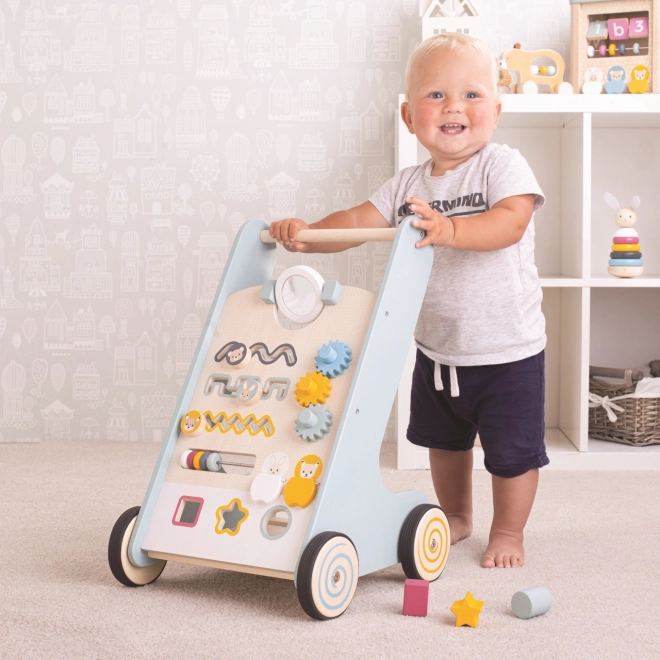 Der aktive Gehwagen Bigjigs Baby Waldbewohner ist ideal für die Entwicklung der motorischen Fähigkeiten und Verbesserung der Geschicklichkeit von Kindern. Dieses Produkt bietet eine Reihe von interaktiven Aktivitäten, wie das Einsetzen von Formen, Zählen auf dem Abakus und das Manipulieren von Zahnrädern.