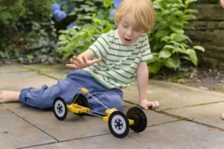 Der KidzLabs Rennwagen zeigt Kindern die Grundlagen der Physik durch die Umwandlung von Energie aus der Mausefalle in Bewegung.
