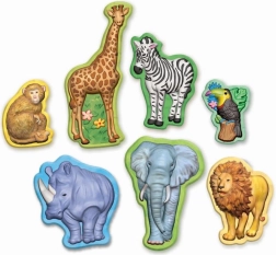 Safaritiere (z. B. Löwe, Giraffe, Elefant, Zebra, Affe, Tukan, Nashorn)