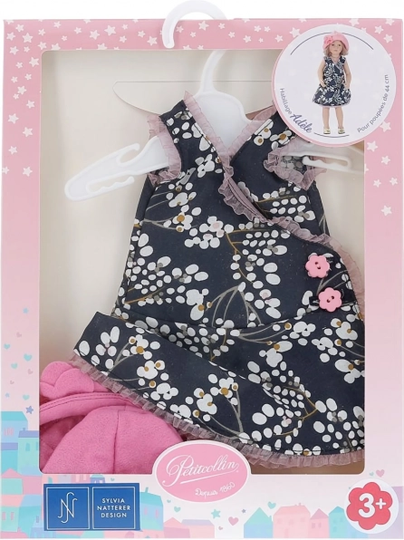 Das Outfit ist für Puppen mit 44 cm Höhe entworfen, insbesondere für die Reihe Starlette. Die Kombination aus dunkelblauem Blumenkleid und rosa Hütchen ergibt ein bezauberndes, bequemes und sehr fotogenes Ensemble. Präzise Nähte und Liebe zum Detail unterstreichen die lange Qualitätstradition der Marke PETITCOLLIN.