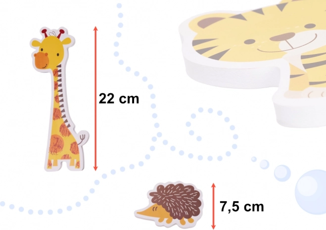 Fröhliche Motive wie Giraffe, Tiger, Äffchen oder Igel begeistern Kinder mit kräftigen Farben und fördern kreatives Kombinieren und Erzählen.