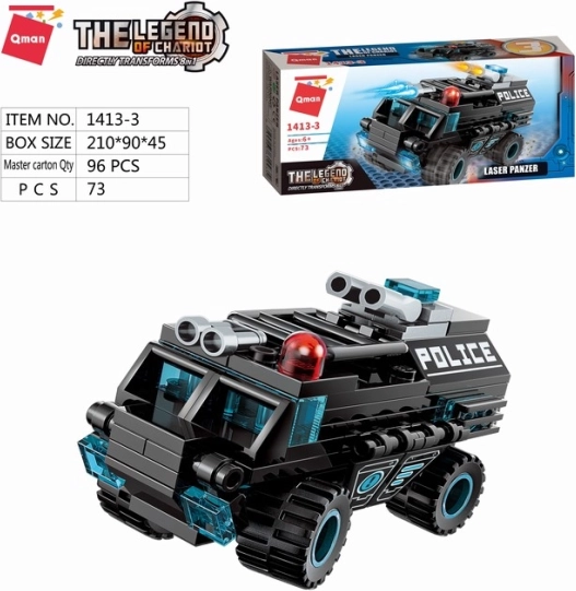 Kombinieren und entwickeln Sie Ihre Kreativität mit diesem Polizeibaukasten! Dieses Set ermöglicht es Ihnen, ein großes Kampffahrzeug aus kleinen modularen Komponenten zu bauen, die auch mit Baukästen anderer Hersteller kombiniert werden können.