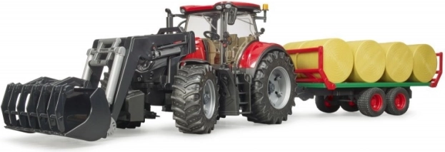 Traktor Bruder Case IH Optum 300 CVX ist das ideale Spielzeug für kleine Landwirte, ausgestattet mit funktionalen Merkmalen wie einem Frontlader und einem Ballenanhänger, die endlosen Spielspaß bieten.