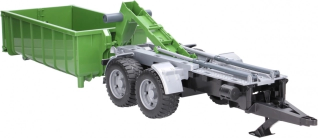 Dieser realistische BRUDER-Anhänger in grün-schwarzer Ausführung erweitert jeden Traktor um einen vielseitigen Container. Dank des Kippmechanismus und der öffnenden Heckklappe gelingt das Entladen mühelos; zudem lässt sich der Container vom Fahrgestell abnehmen und separat verwenden.