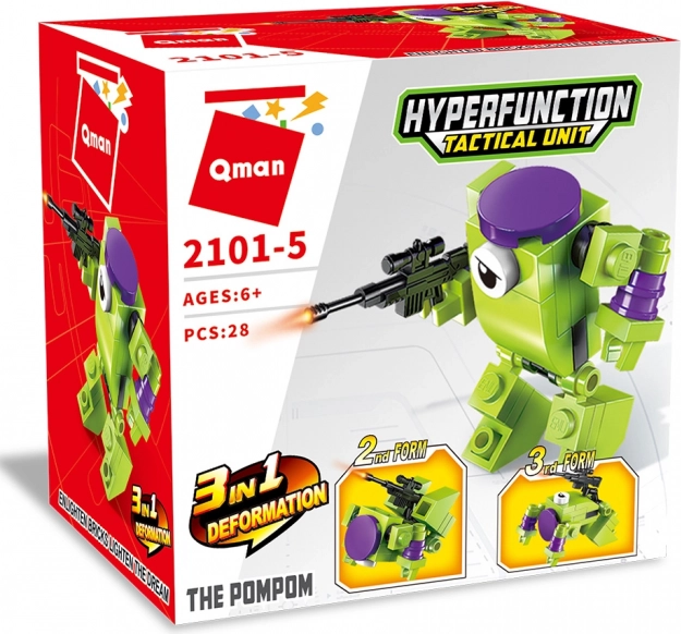 Entdecken Sie die Welt des Qman-Baukastens, der es ermöglicht, einen Robot-Krieger in drei verschiedenen Varianten zu bauen. Dieses hochgradig variable Set enthält 28 bunte Teile, die leicht mit ähnlichen Baukästen von verschiedenen Herstellern kombiniert werden können.