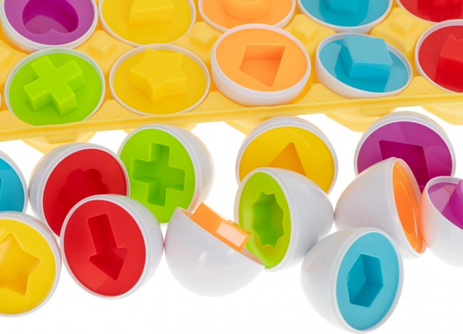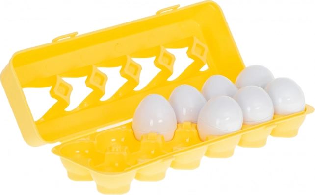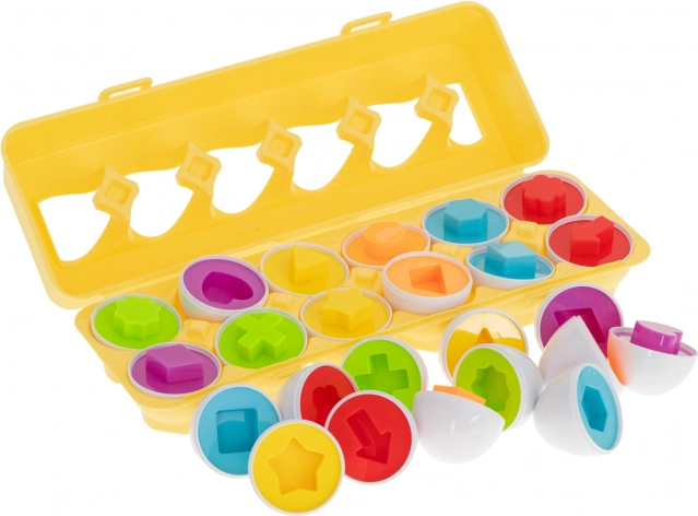 Das Set enthält 12 Eier mit verschiedenen Formen und Farben, die unter der Schale verborgen sind. Das Spiel besteht darin, die Hälften der Eier entsprechend ihrer Form und Farbe zusammenzusetzen, um ein Ganzes zu bilden. Dies ist nicht nur ein unterhaltsames, sondern auch ein pädagogisches Spiel, das das logische Denken stärkt. Die Eier sind leicht und einfach zu transportieren, was sie ideal macht, um bei langen Reisen oder beim Warten im Arztzimmer zu unterhalten.