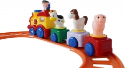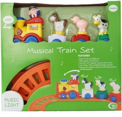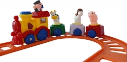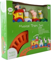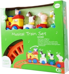 Kinderzug mit Melodie und beweglichen Figuren ist ein farbenfrohes Spielzeug für Kinder ab 18 Monaten. Es umfasst Klang- und Lichteffekte und fördert die Entwicklung der Feinmotorik.