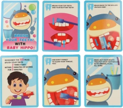 • Lernkärtchen auf Englisch zeigen die richtigen Schritte beim Zähneputzen.