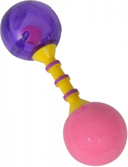 Diese Rassel stimuliert die sensorische Entwicklung des Kindes dank ihrer leuchtenden Farben und den erzeugten Geräuschen beim Schütteln.