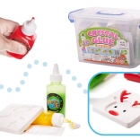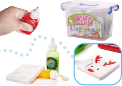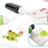 Bereiten Sie einfach eine Wasserlösung mit Granulat vor, wählen Sie eine Form und füllen Sie sie mit Ihren Lieblingsfarben. Tauchen Sie die Form kurz ein – die Figur härtet aus und lässt sich leicht ablösen. Die entstandenen Figuren sind elastisch und erinnern an Silikon. Das Gel kann auch direkt in die Lösung gegossen werden, um völlig eigene, originelle Formen zu kreieren.
