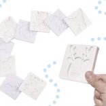 Füllen Sie die Form, tauchen Sie sie in die Lösung mit Granulat und beobachten Sie, wie das Motiv in wenigen Momenten aushärtet und sich von der Form löst.