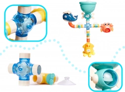 Die Montage geht im Handumdrehen: Starke Saugnäpfe haften an Wanne und Fliesen, sodass das Spielzeug stabil bleibt. Die blauen Ventile ermöglichen es Kindern, Richtung und Durchfluss des Wassers zu steuern – so fördern sie Geschicklichkeit, logisches Denken und die Hand-Auge-Koordination.