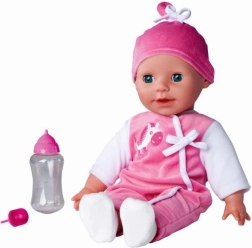 Zur Puppe gehören Zubehörteile wie eine Flasche und ein Schnuller, die das Rollenspiel und die Pflege des Babys erleichtern.
