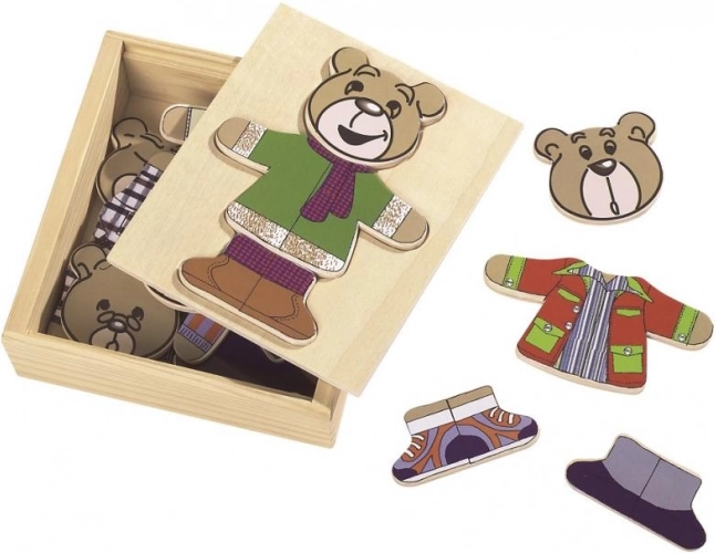 Kleide deinen Bärchen mit diesem lustigen Puzzle an! Enthält 20 Teile und kommt in einer praktischen Holzbox.