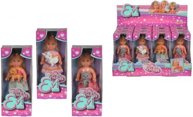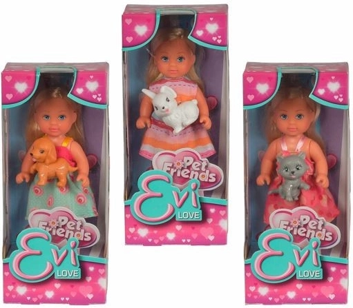 Die Puppe Evi Love mit Kuscheltier bringt Kindern Stunden der kreativen Unterhaltung mit Hund, Katze oder Kaninchen.