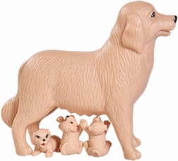 • Komplett-Set – Puppe, Hundemama, 3 Welpen und thematisches Zubehör.