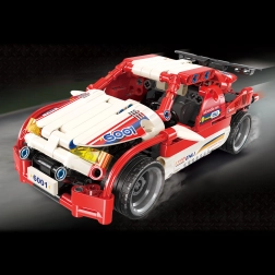 Aufziehbares Rennwagenmodell voller Geschwindigkeit und Spaß! Nutzen Sie den Aufklebersatz, um das Rennsportdesign zu vervollständigen, und genießen Sie endlose Kombinationsmöglichkeiten dank der Kompatibilität mit anderen Bausätzen.