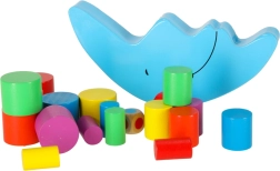 Montessori-Balancespiel Holz-Mond mit Würfel und bunten Blöcken