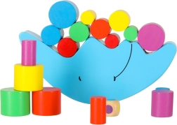 Unterhaltsames Montessori-Spiel für Kinder und Eltern: ein hölzerner Balance-Mond, auf den nach dem Wurf mit dem Würfel bunte Klötzchen gelegt werden. Fördert die Feinmotorik, die Hand-Auge-Koordination und das räumliche Vorstellungsvermögen. Hochwertige Holzverarbeitung mit glatten Kanten und lebendigen Farben sorgt für sicheres und freudiges Spielen.