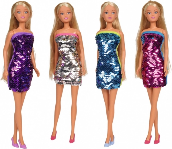 Erleben Sie den zauberhaften Verwandlungsspaß mit der Steffi Love Puppe in einem glitzernden Kleid! Dieses besondere Kleid ändert seine Farbe, wenn Sie die Pailletten umkehren, und bringt somit immer wieder neue Looks hervor.