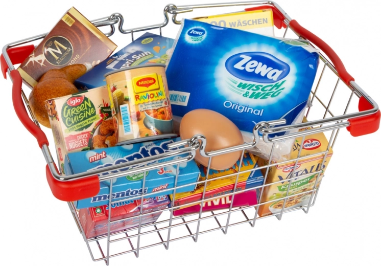 Dieser niedliche, aber stabile Metalleinkaufskorb von SMALL FOOT ist die perfekte Ergänzung für alle Kinderläden und Spielküchen. Er ist randvoll mit Kunststoffattrappen bekannter Lebensmittel und Alltagsprodukte gefüllt, sodass Kinder realistisch Einkaufen, Sortieren und Bedienen üben können. Die Auswahl der enthaltenen Attrappen ist variabel, sodass jedes Set eine andere Überraschung bereithalten kann.
