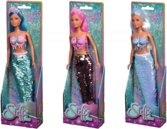 Puppe Steffi Love Meerjungfrau ist ideal für alle Liebhaber fantastischer Spiele. Dieses magische Modell hat eine Flosse aus bunten, farbwechselnden Pailletten und bietet sicherlich stundenlangen Spaß und Fantasie.