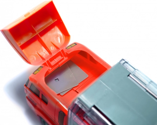 Der LKW kann bis zu 14 Autos fassen und verfügt über eine klappbare Dachluke für einfachen Zugriff.