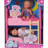 Gestalten Sie ein gemütliches Zimmer für Ihre Puppen mit dem bezaubernden Evi Love Set. Zwei kleine Puppen schlafen im Etagenbett mit praktischer Leiter – so macht das abendliche Zubettbringen genauso viel Spaß wie das Spielen am Tag.