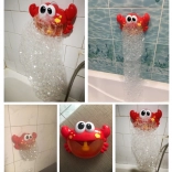Macht jedes Bad zum Vergnügen: Dieser sprudelnde Badewannen-Krabbe erzeugt Schaum und spielt eine fröhliche Melodie. Dank der Saugnäpfe lässt er sich leicht an Fliesen oder Badewanne befestigen, und die Eintasten-Bedienung sorgt für sofortigen Spaß.