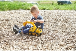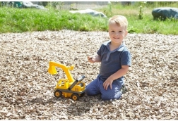 Der Baustellenbagger LENA ECO erfreut alle kleinen Baumeister. Durch die Kombination aus recyceltem Kunststoff und Holzanteil ist das Spielzeug robust, stabil und zugleich umweltfreundlich. Der bewegliche Ausleger mit Schaufel ermöglicht realitätsnahes Aufnehmen von Sand und Erde, während die aufklappbare Kabine die Handhabung erleichtert und kreatives Spiel fördert.